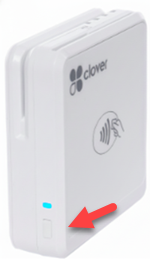 Step 2: Turn on the Clover Go by pressing and holding the power button until the device vibrates and the light turns on. The LED indicator shows the device’s status.