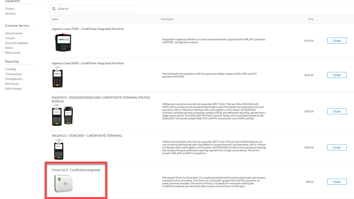 To buy Clover Go devices, place your order directly through your CardConnect portal: