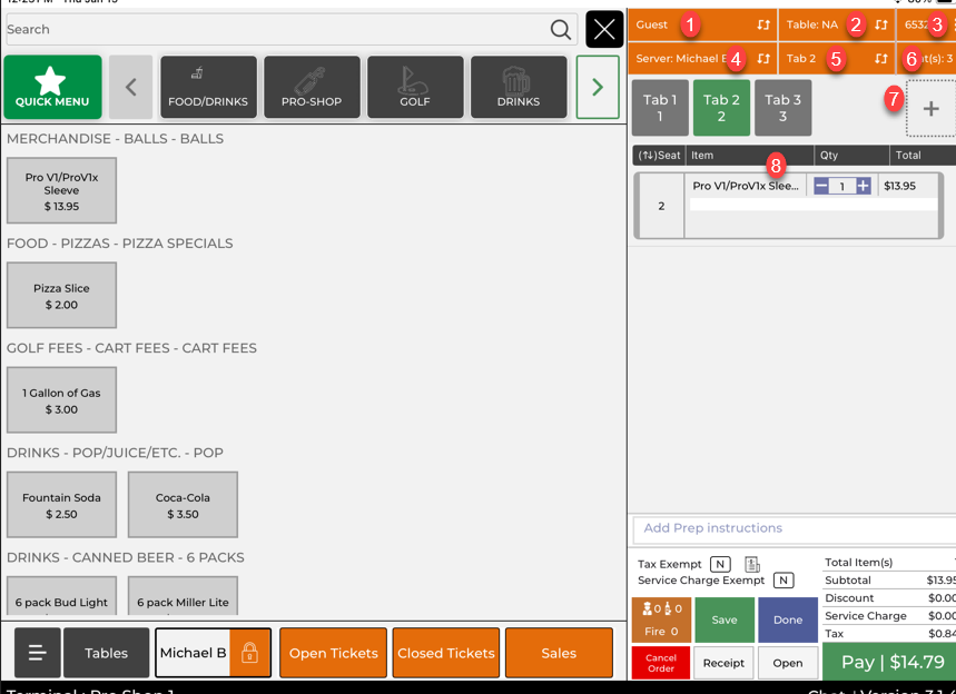 Next, you'll see the table number (if you've selected a table). This shows which table this ticket is associated with.
