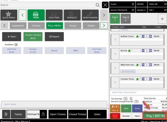 Step 1: Tap Open Tickets and select the tab you want to close. Review the balance due, then tap Pay.