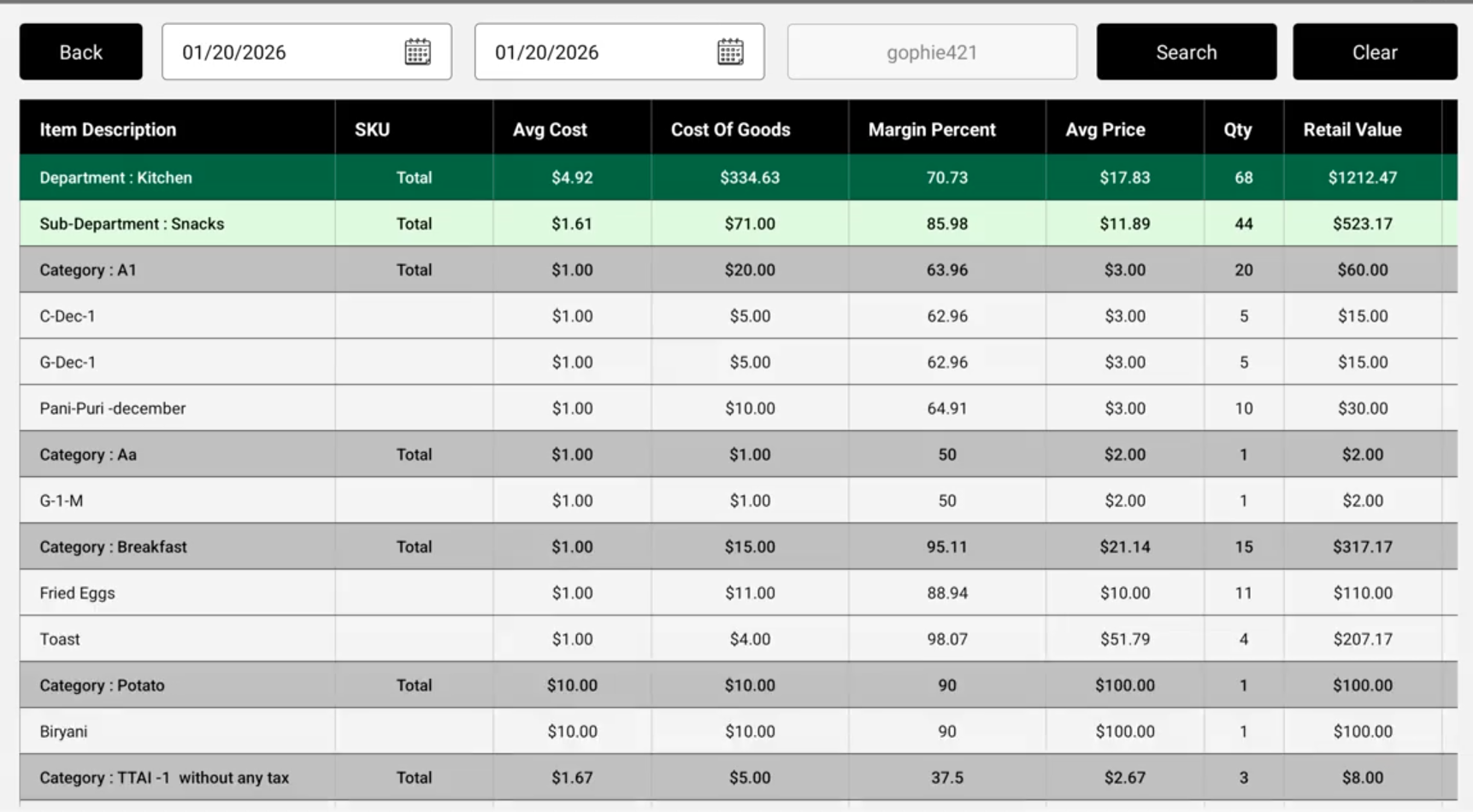 A beverage cart returns after a busy afternoon and the operator requests a restock of beer, water, and snacks. The F&B manager opens the F&B App on a Clover Flex, signs in as the operator (or has the operator sign in), and runs the Sales by Employee report. The manager reviews the gross sales by department and compares those totals to what’s being re-ordered. If the restock request seems high compared to recorded sales, the manager can quickly investigate before inventory is adjusted.