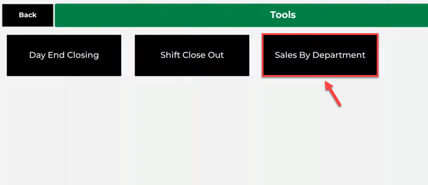Use the department totals to confirm what was sold during the employee’s shift (for example, Beer, Liquor, Snacks, NA Beverages—based on your department setup).