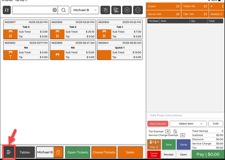 Step 1: Open the F&B App and sign in with the employee’s login you want to review.