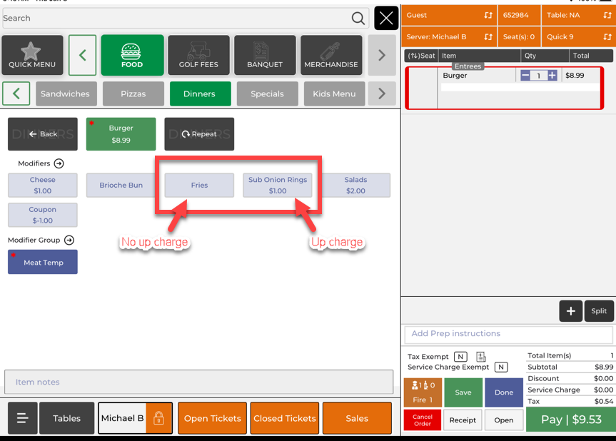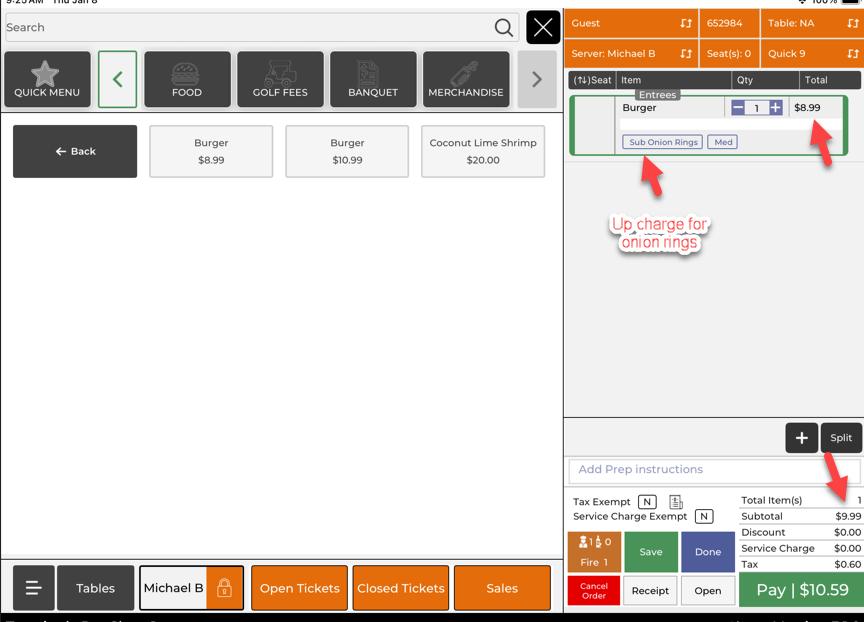 Step 5: Review the item on the right side of the screen to confirm the selected modifiers (and any added cost) are listed correctly with the order.