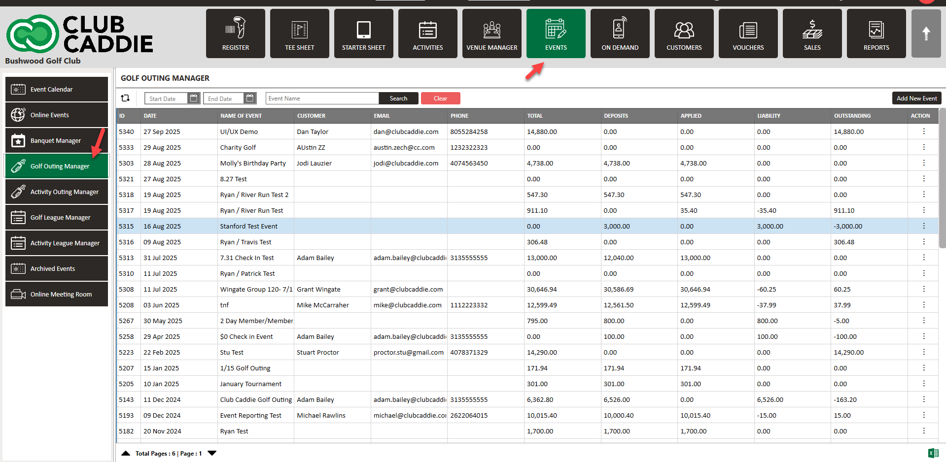 Step 1: Select the EVENTS module from the module navigation menu. Then, click on Golf Outing Manager in the left-hand menu.
