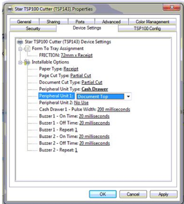 - "Page Cut Type" and "Document Cut Type" to "Partial Cut"