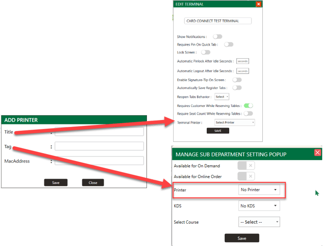 - Confirm sub-departments are configured to route to the correct printer via the Printer dropdown (Tag-based)