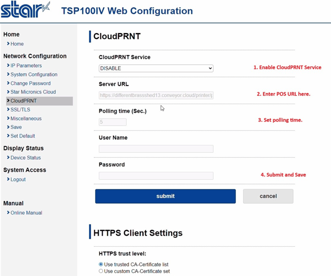Go back to the Star Intelligent Network Utility page and click CloudPRNT in the left-hand column.