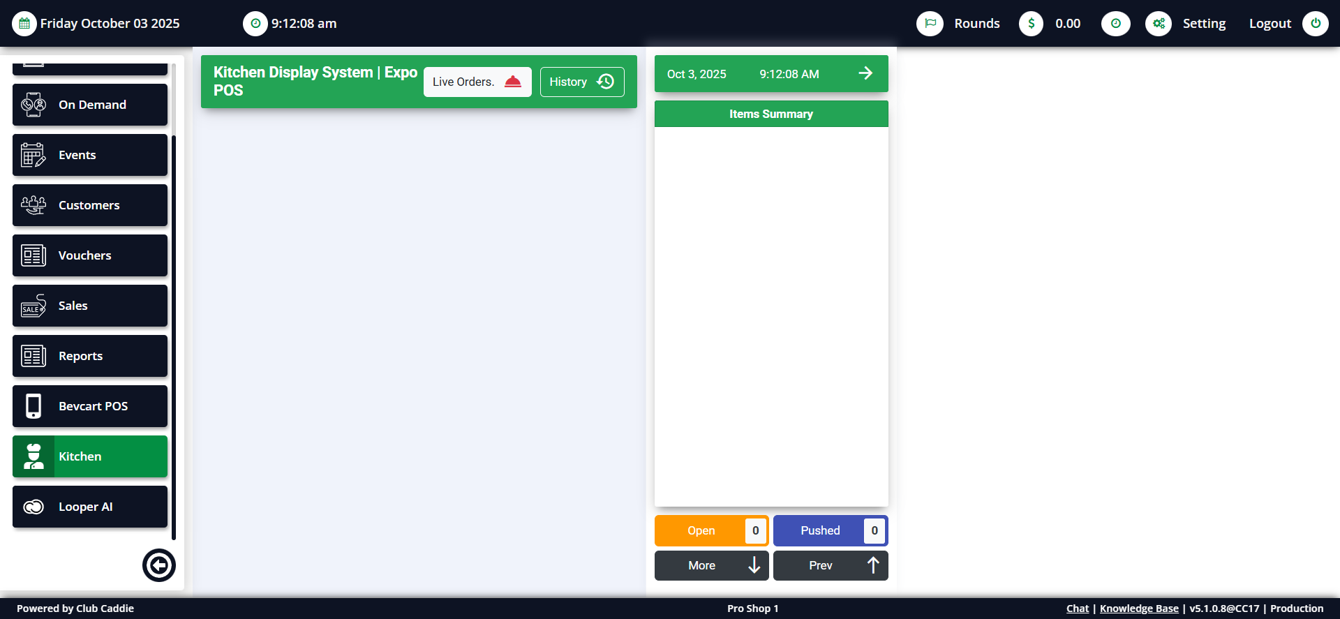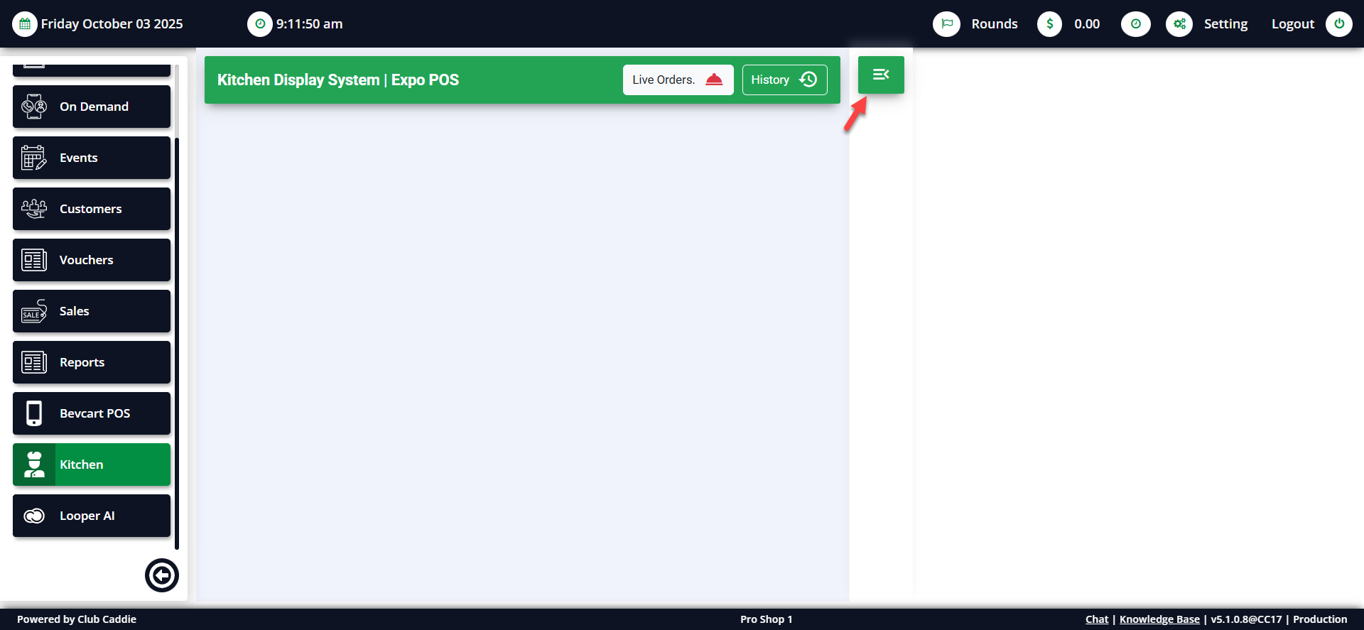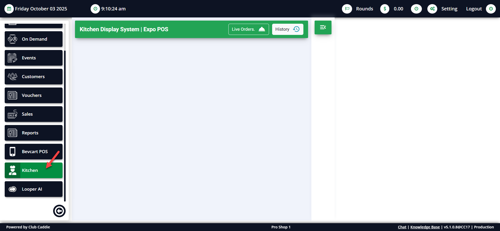 Step 1: On the Club Caddie Online website, scroll down to the Kitchen terminal and click on it.