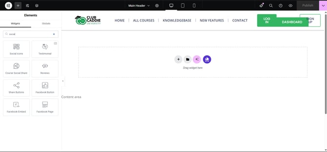 In the dropdown menu, click Header. Elementor will open and load the global header template that appears across your site.