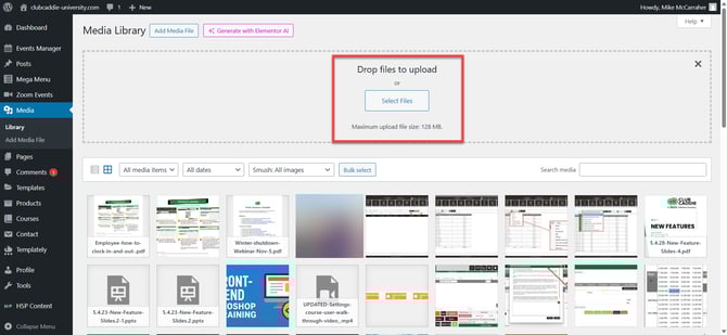 From your computer, drag files (like images or PDFs) directly into the Media Library screen.