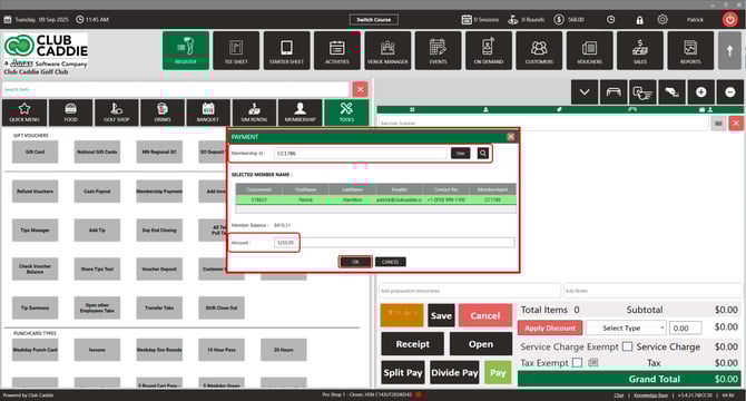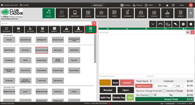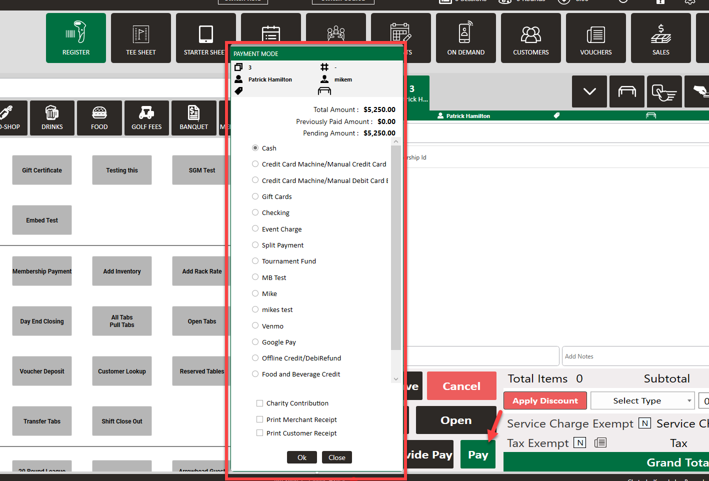 Step 3: The membership payment will appear as a line item on the tab, where you can proceed with the standard payment procedures.