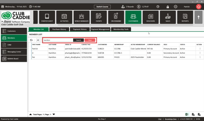 Search: Search the member by their Membership ID number or enter a customer name and click on Search. The system will generate the list of members.