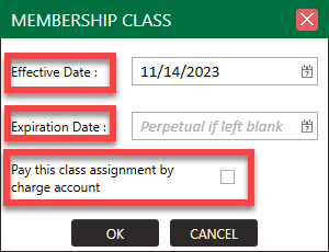 When setting up these classes, you'll need to specify an 'Effective Date,' which is usually the current date. However, you can set this to a future date, but the customer will NOT have charging privileges until that future date.