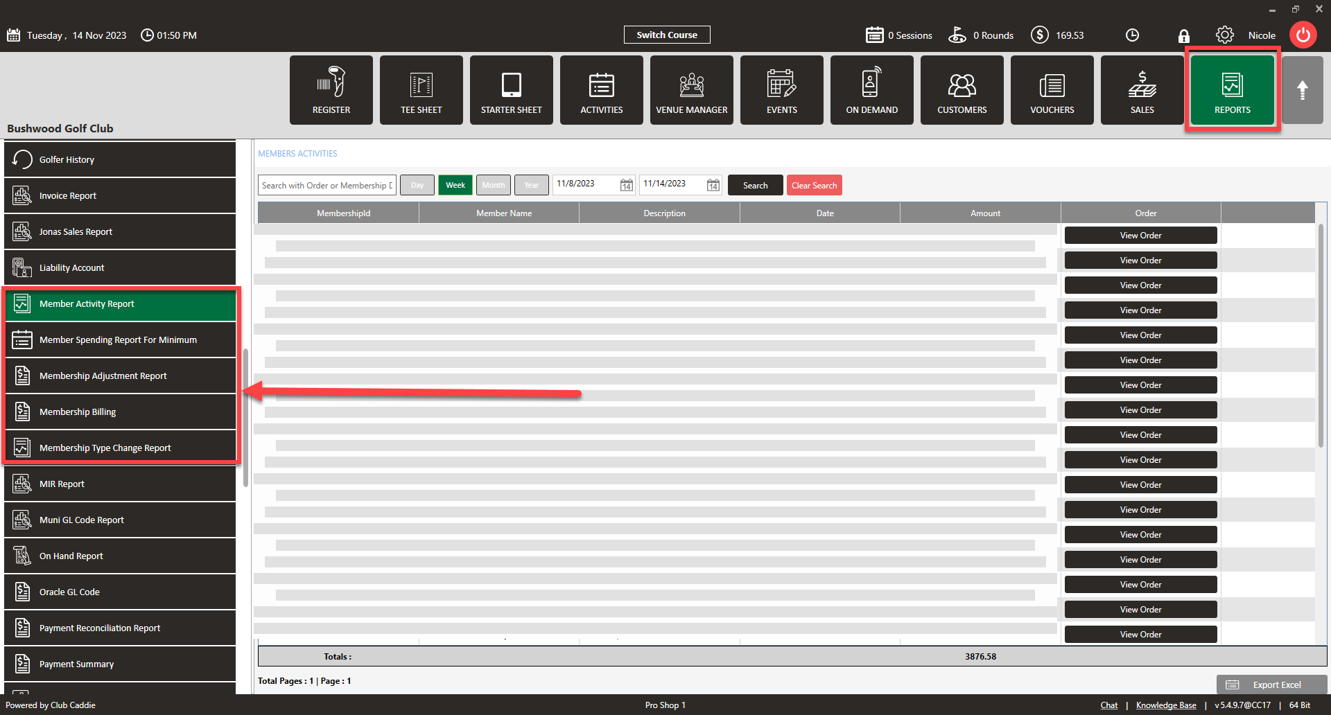- Member Activity Report: This report shows every member's account changes. Payments, voids, account charges, bills etc.
