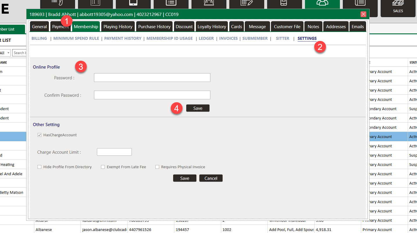 Step 2: From the top navigation menu, click the "Membership" tab, and then click "Settings". After that, you can set the password for the online profile and click "Save".