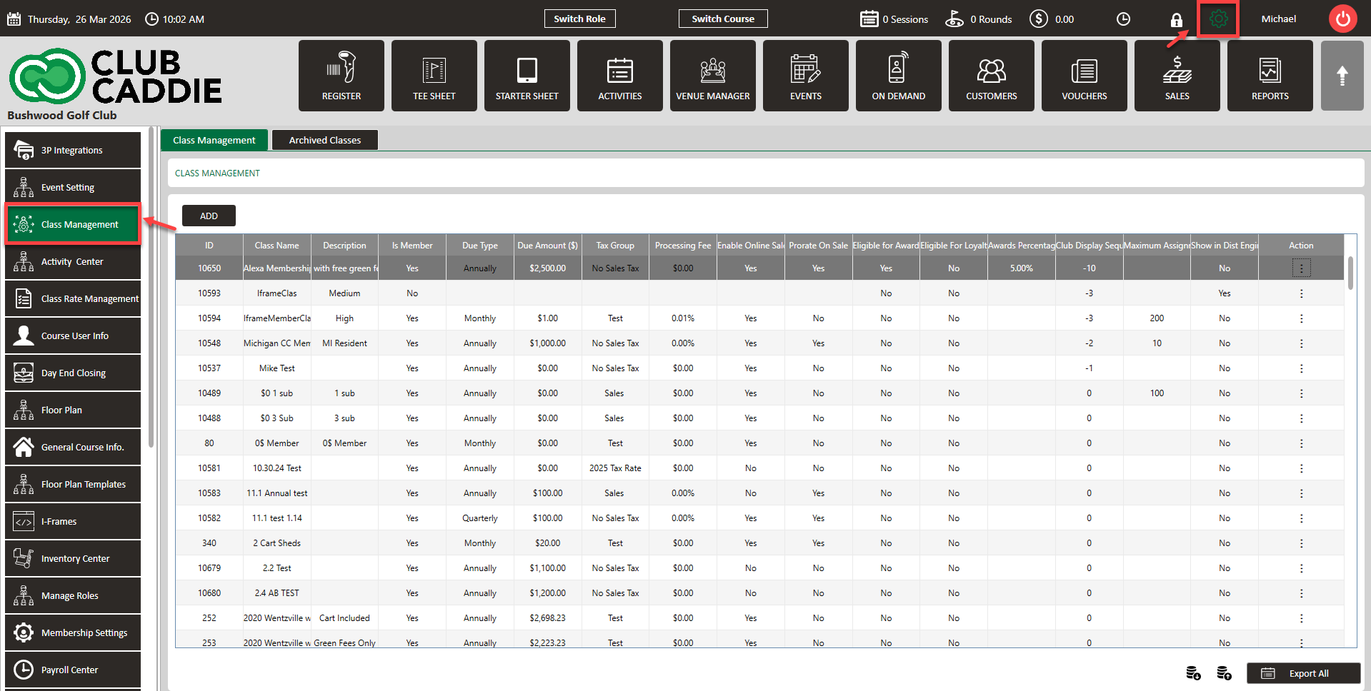 Step 1: Select Settings, then Class Management.