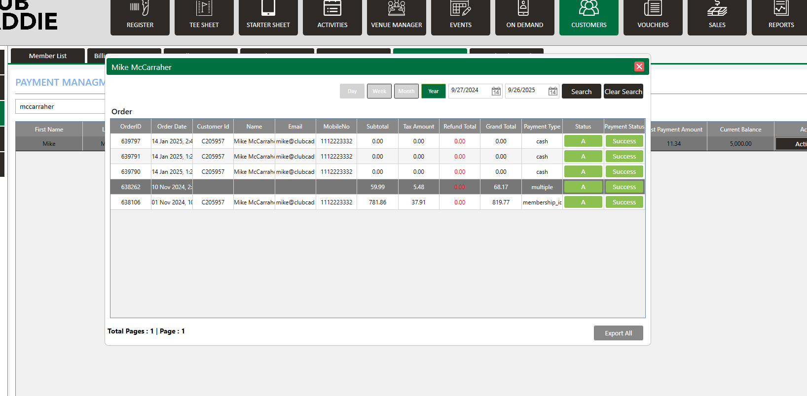 History: You can check all payment history for a particular member.
