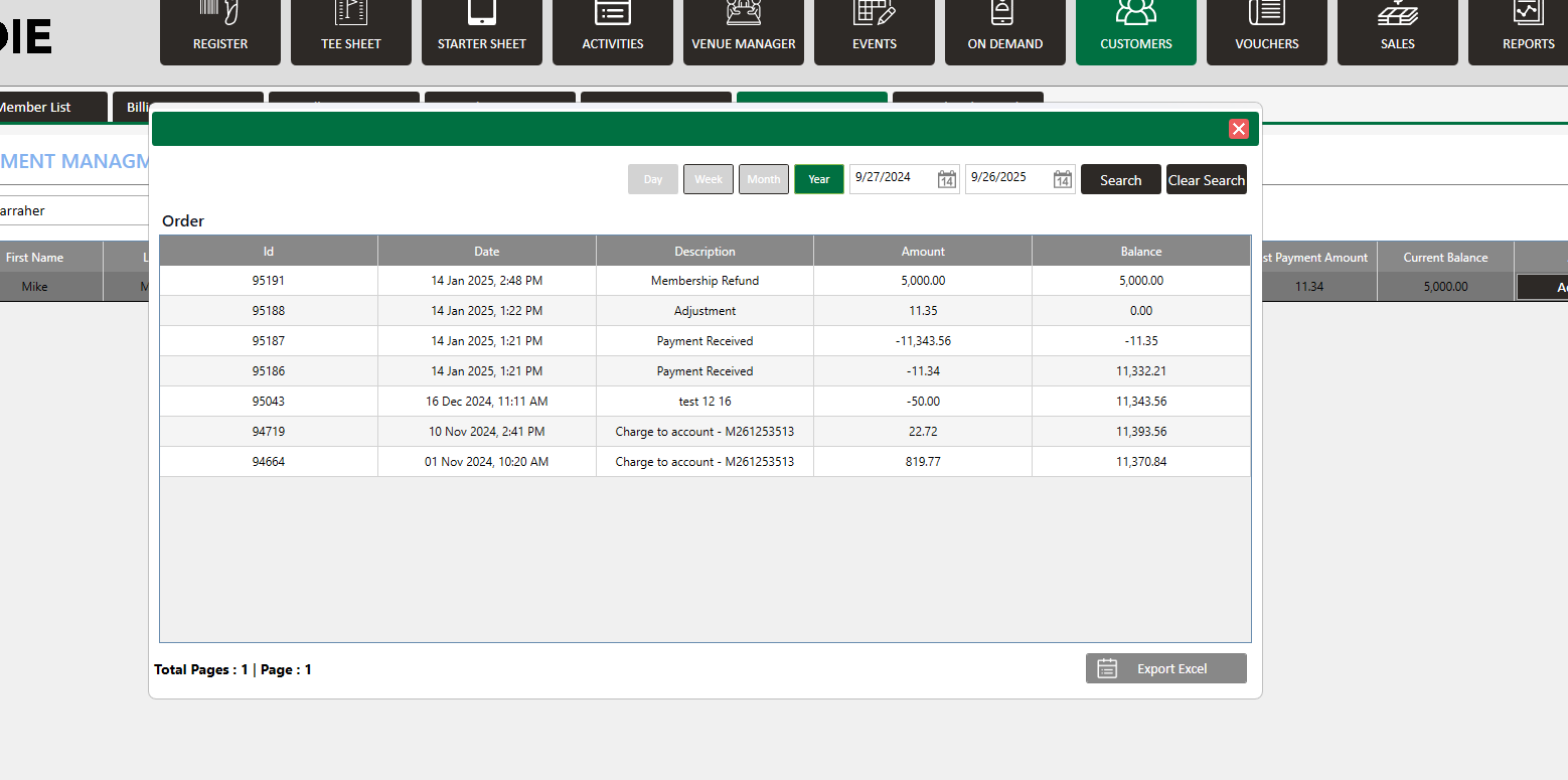 Ledger: You can check all ledger adjustments for a particular member