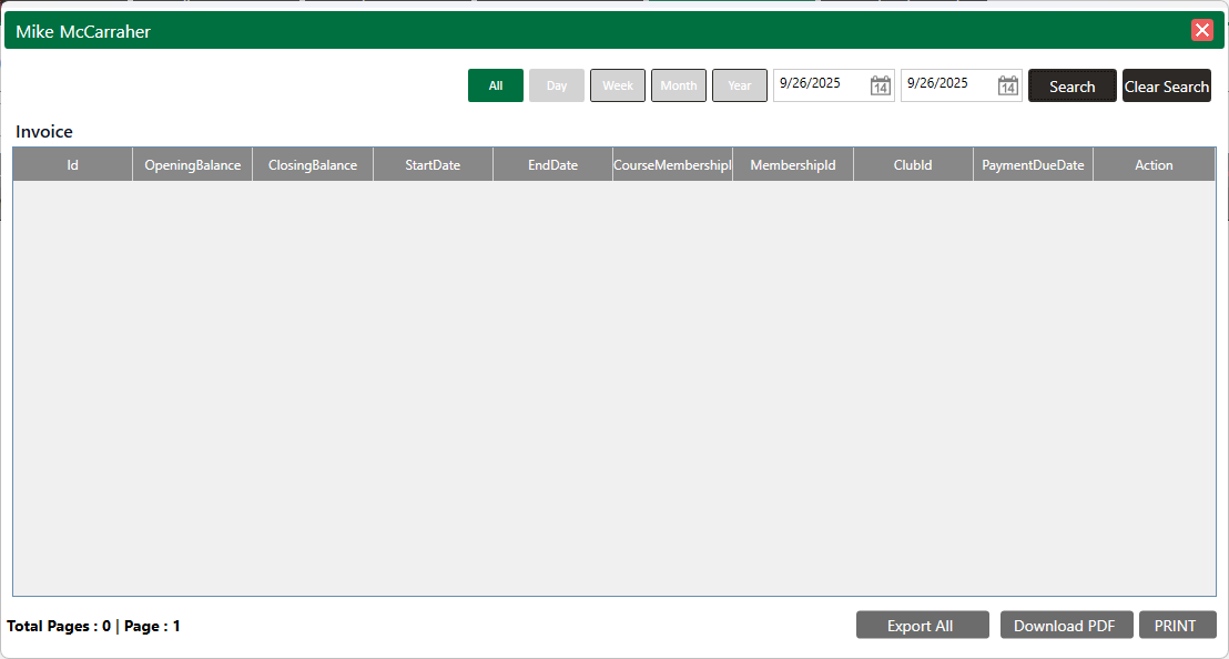 Invoices: You can check the invoice details for a member.