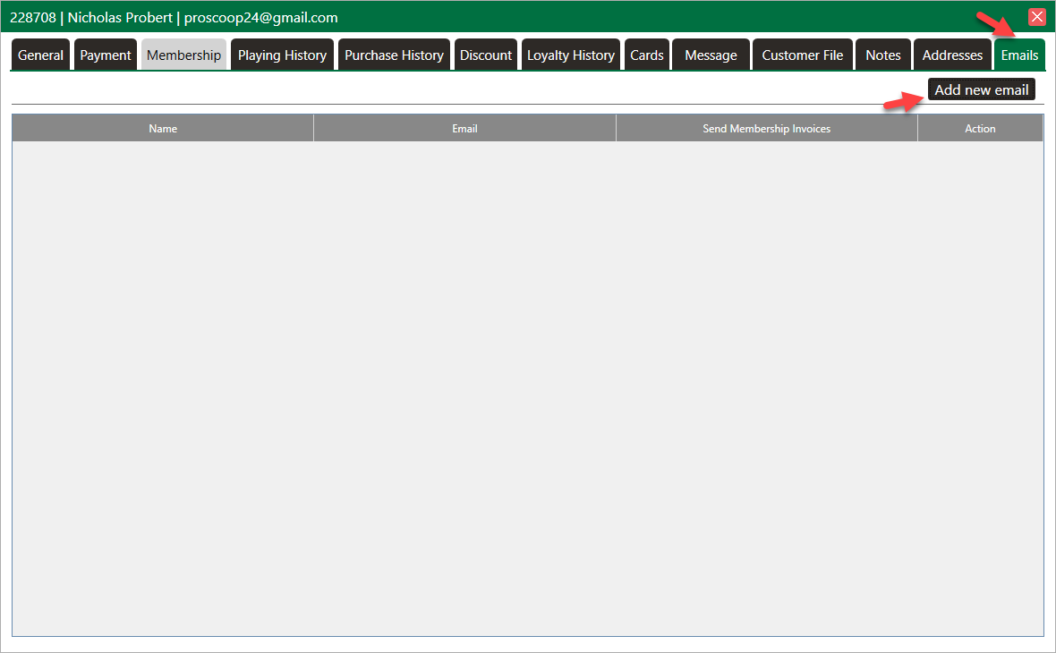 Step 2: Then, click on the Emails tab. Here you can select Add new Email, enter the name and email address, and then click Save.