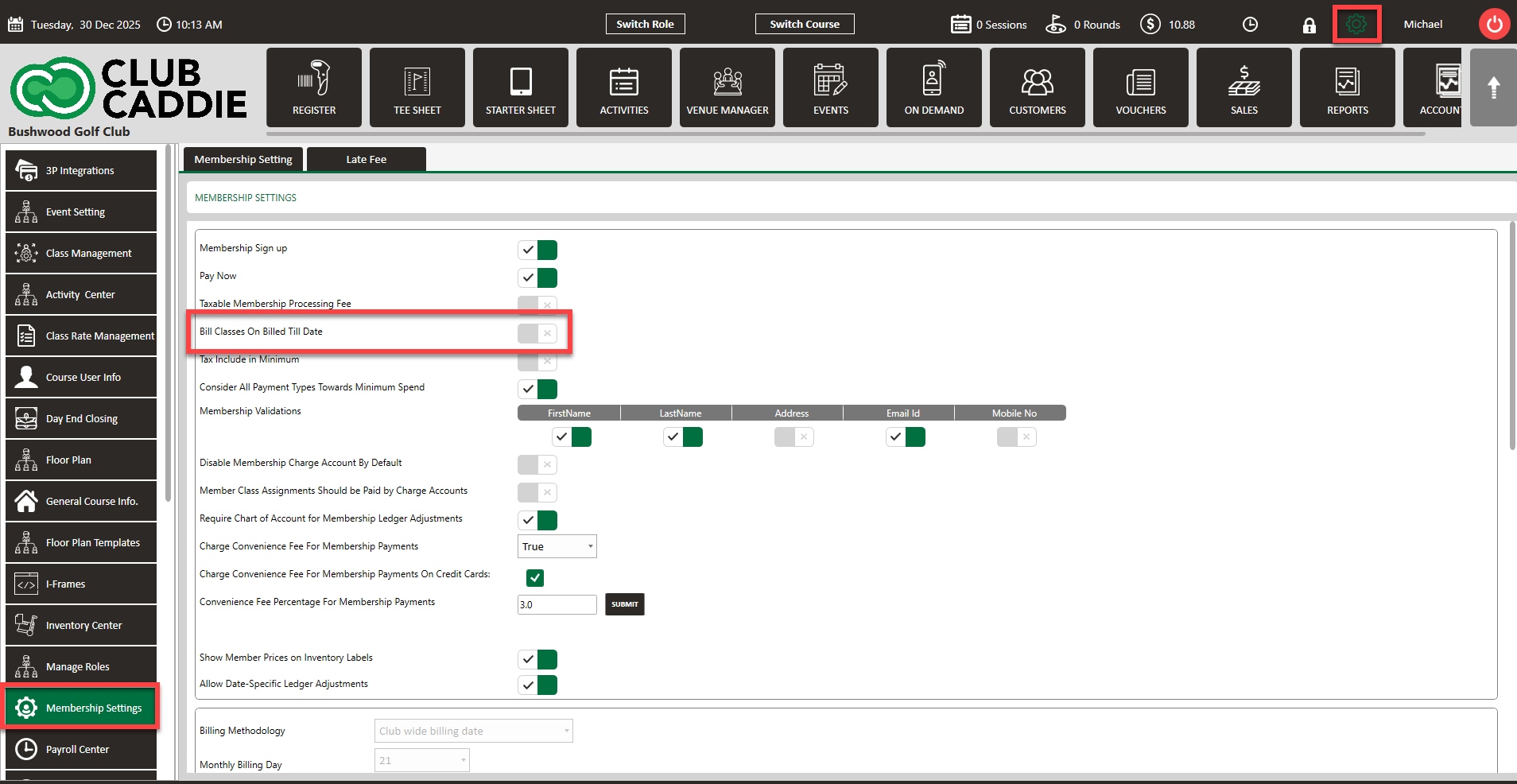 Step 2: Check your facility setting for Bill Classes on Bill Till Date (in Membership Settings). This setting controls when the charge posts: