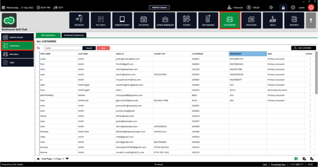 Step 1: Select the 'CUSTOMERS' module from the module navigation menu. Click 'Customers' in the left-hand menu. The system will open an 'ALL CUSTOMERS' window where all customers can be viewed.