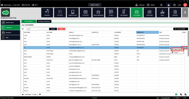 Step 2: Search for a customer using the provided search field or navigate to the customer. Click the 'ACTION' section of the customer and click 'View/Edit' from the pop-up window. The system will open a customer profile pop-up window.