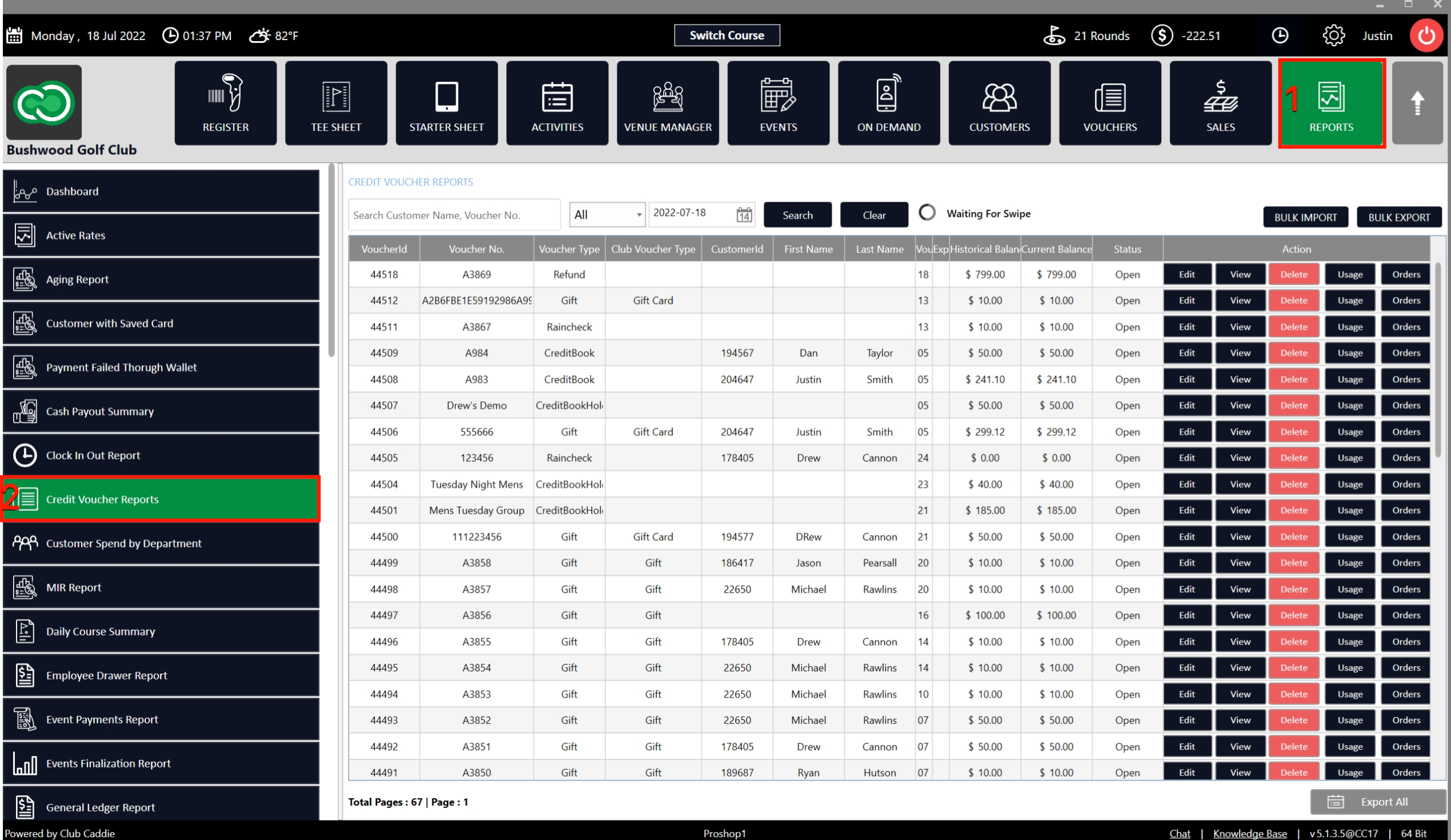 Step 4: You can go to REPORTS (1) module in the main menu and click on Credit Voucher Reports (2) to find the generated Credit Voucher.