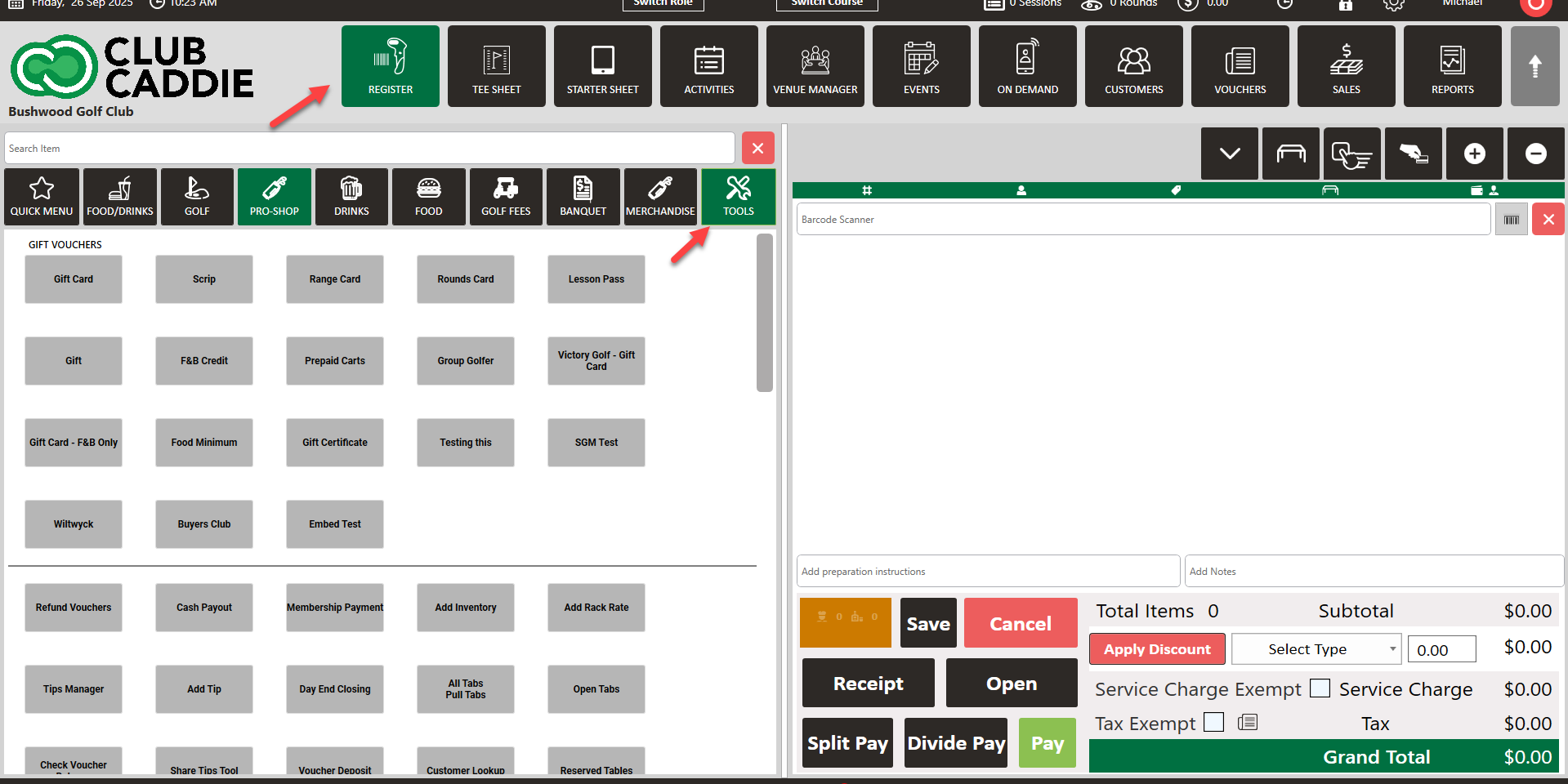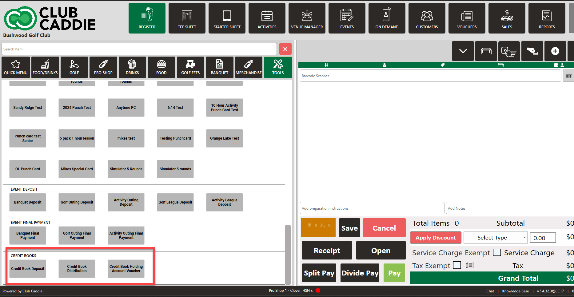 Note that if you do not see this option you will need to contact your course admin to enable the permission for "Voucher Manager" module and the subsequent "Credit Book Vouchers" permission.