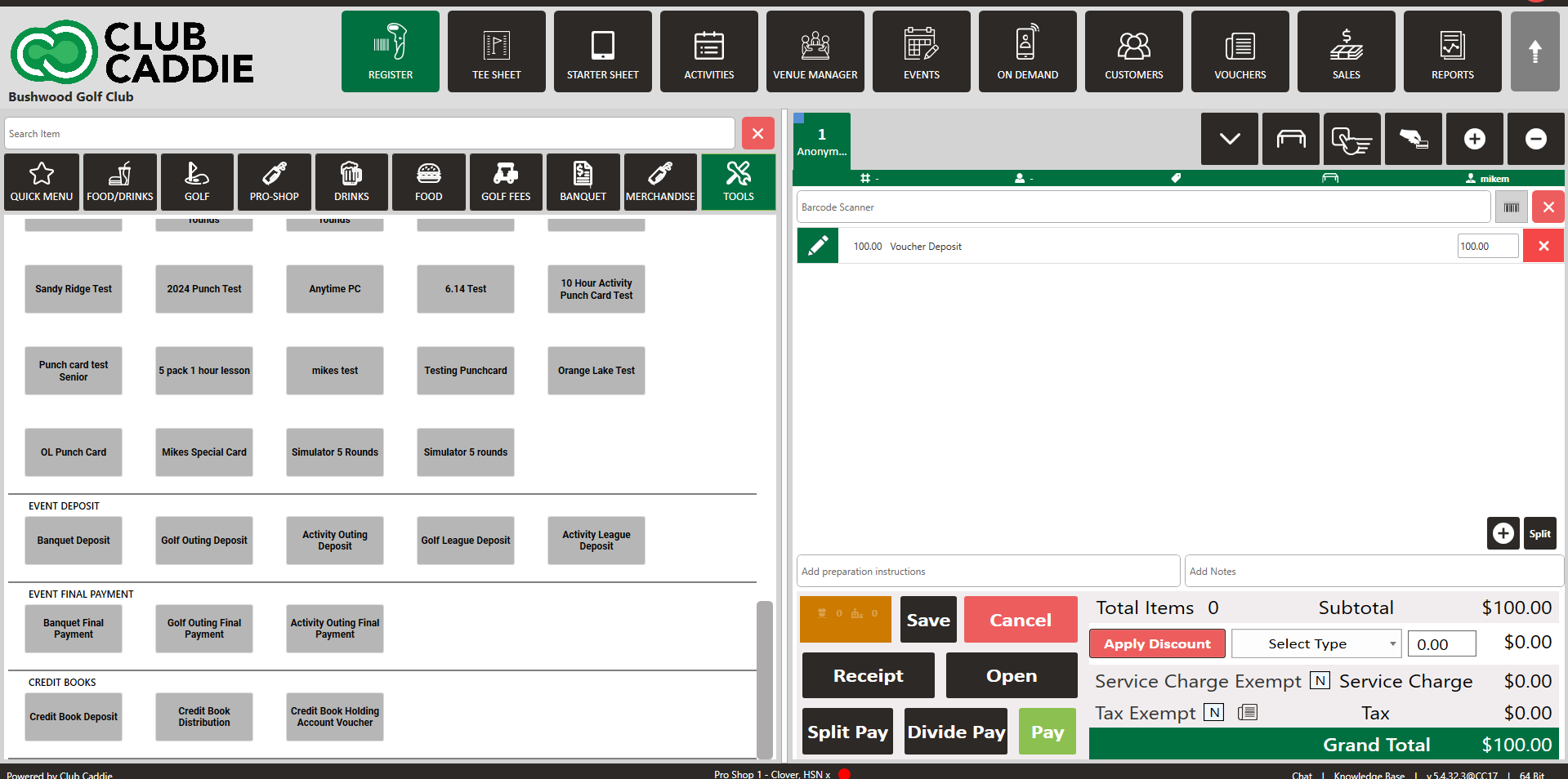 Clicking "Add" will create a voucher deposit line item in the register and it can subsequently be rung in similar to any other transaction.