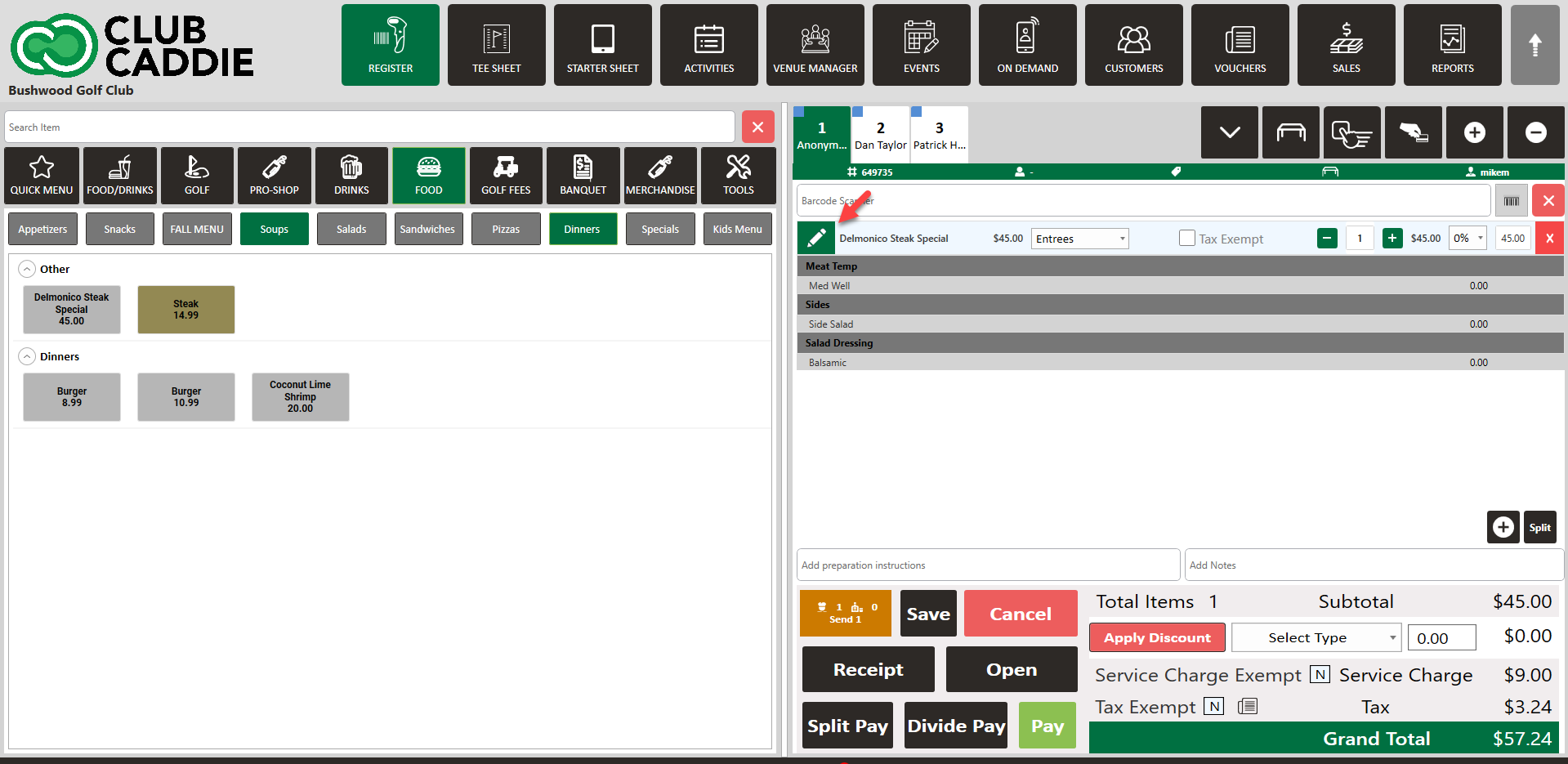 Step 1: After clicking on an item to add it to the register tab, click on the pencil-shaped icon on the left side of the item title to modify selected items.