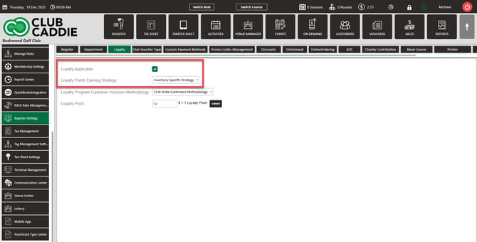 Article Content: This article provides an overview of how Loyalty Points work in Club Caddie, including the settings that control how customers earn and redeem points. It covers choosing an earning model in Register Settings (club-wide vs inventory-specific), configuring item-level point rules, and limiting earning to eligible customer classes. It also notes key rules like register settings overriding item setup and that purchases paid with points—or made by ineligible customers/items—earn 0 new points.