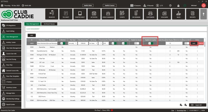 Enable Eligible for Loyalty for the class(es) that should earn points (Action → Edit Class), then Save.