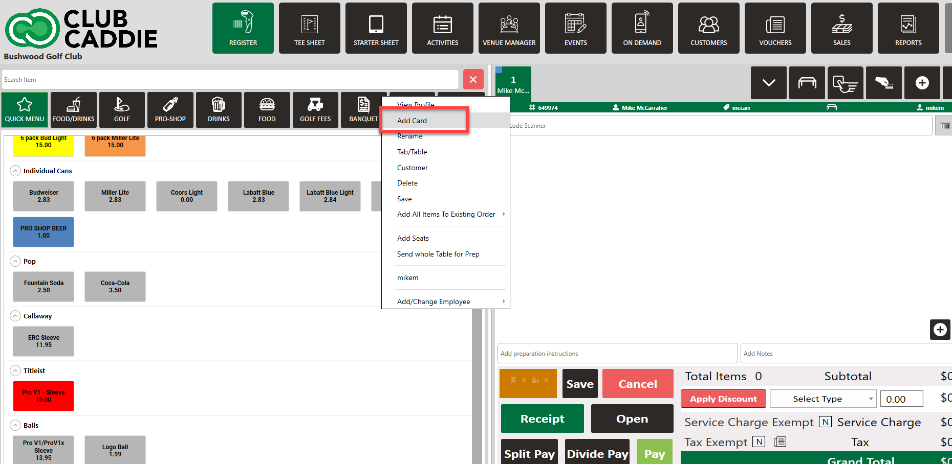 It is important to note that the card is pre-authorized for same-day use and it is recommended that the tabs are closed out prior to that day-end closing time.