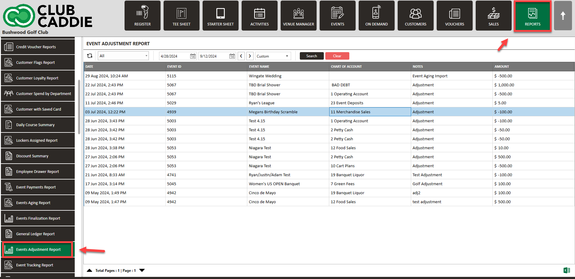 Step 1: Select the Reports module along the top row. Then click Events Adjustment Report from the left-hand-side menu.