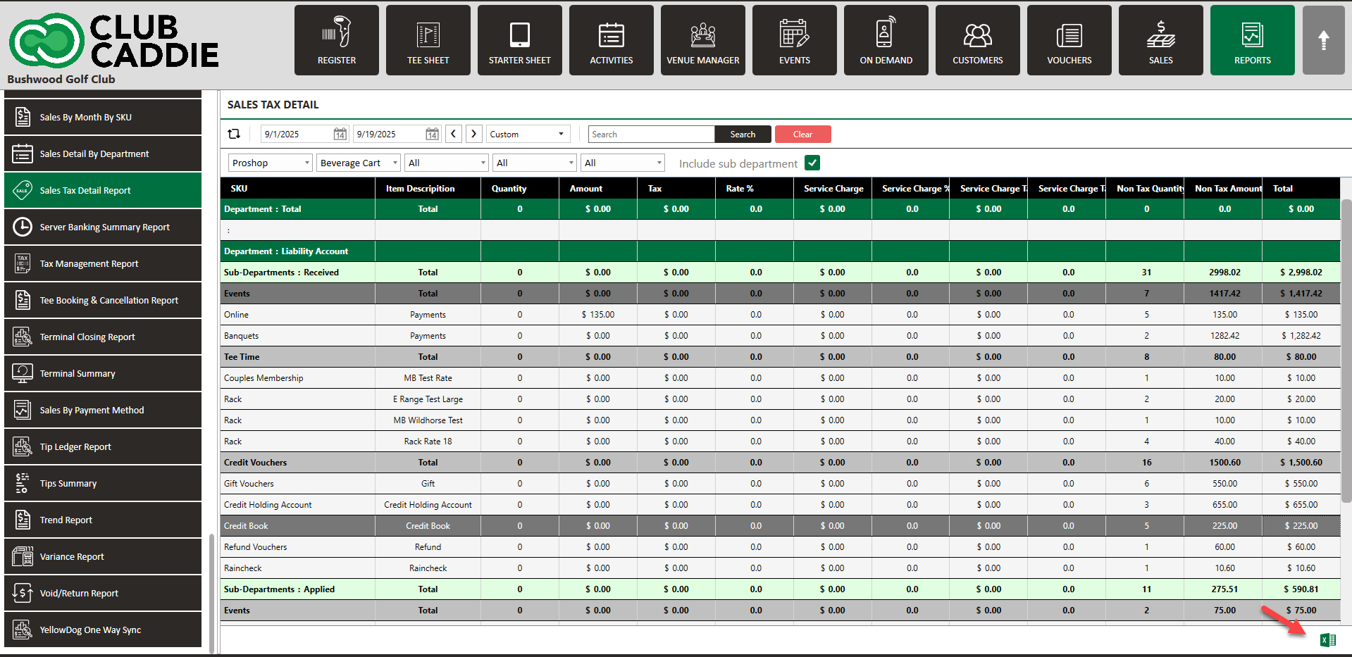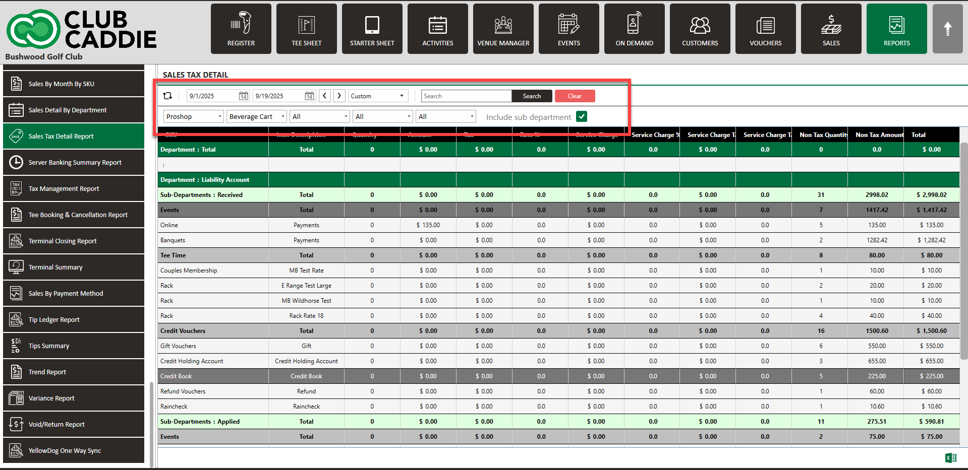 Step 3: Here you have the option to sort the report by terminal, terminal location, department, sub-department, as well as filter by a specific date range.