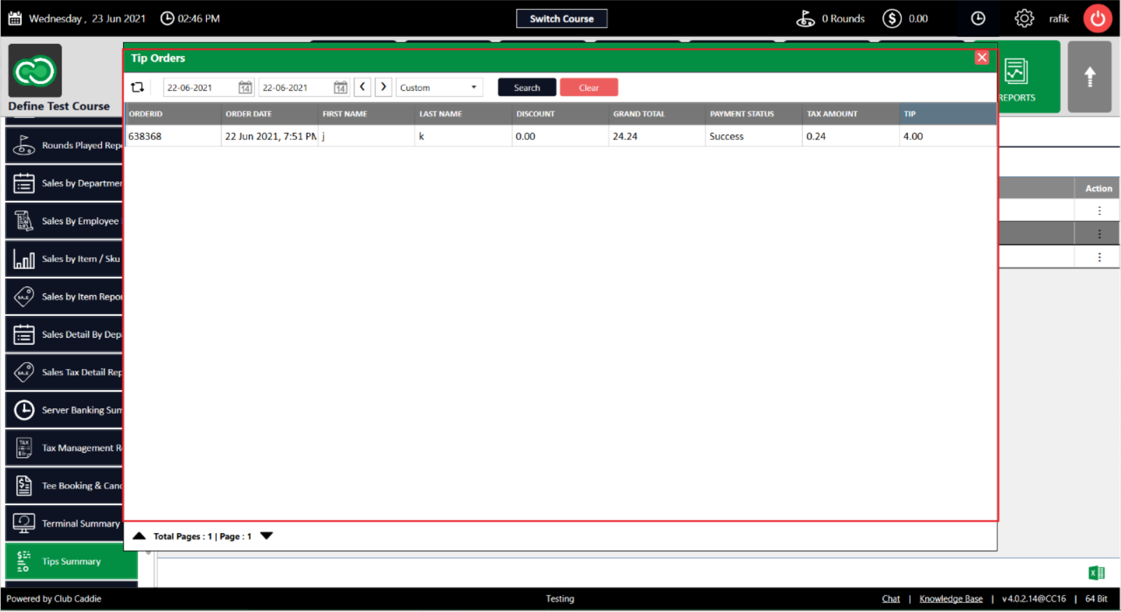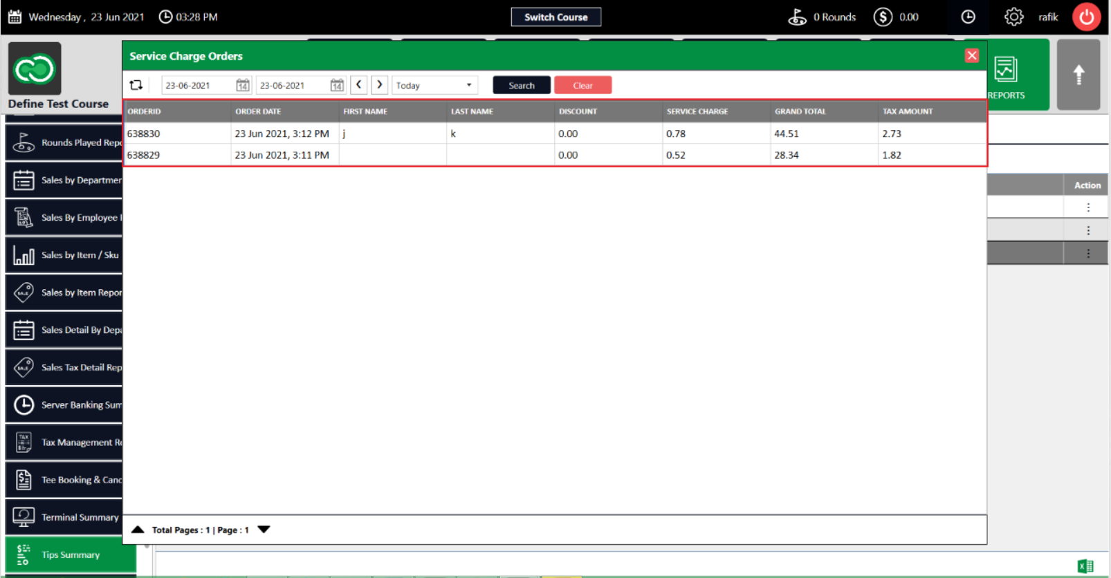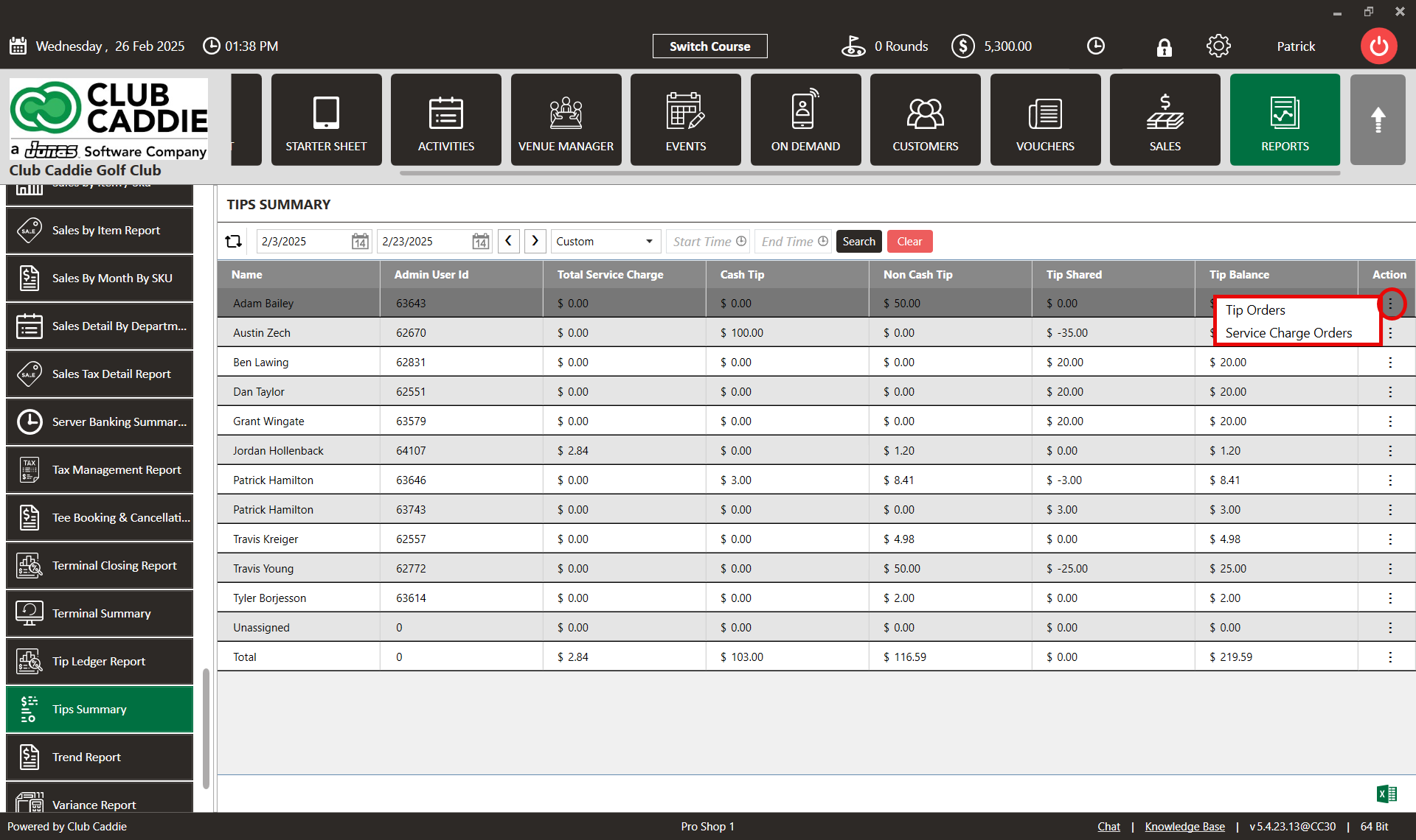 Step 4: Access the “Tip Order and Service Charge Order” options by clicking on the three dots (Action button) in the “Action” column