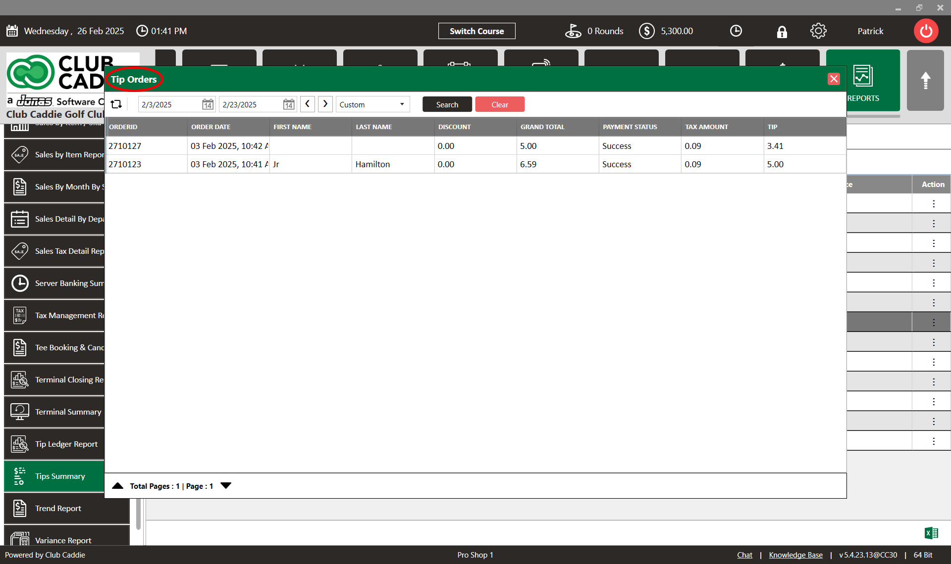 A) In the “Tip Order” section, you can see which orders have tips applied to each employee.