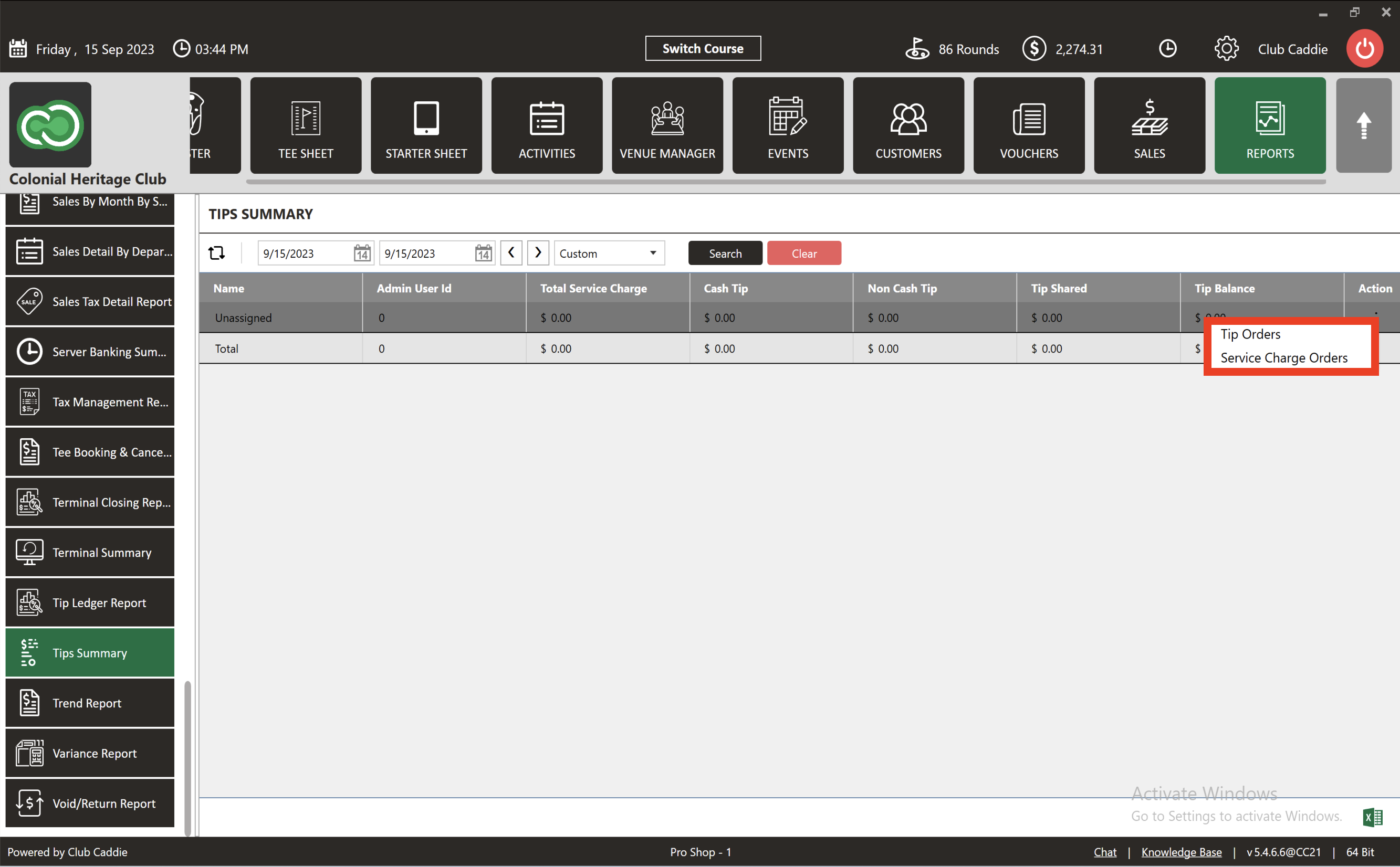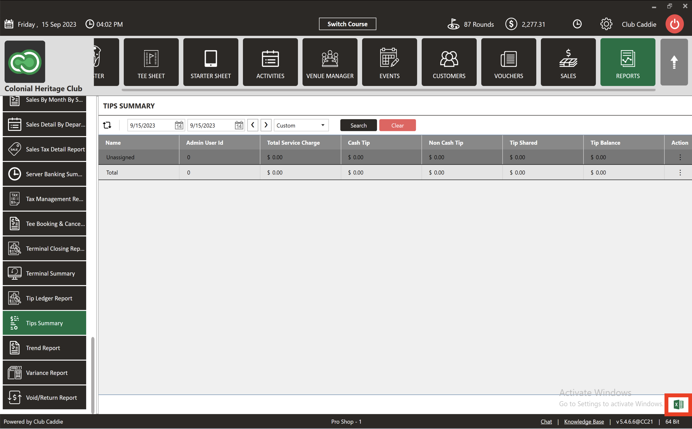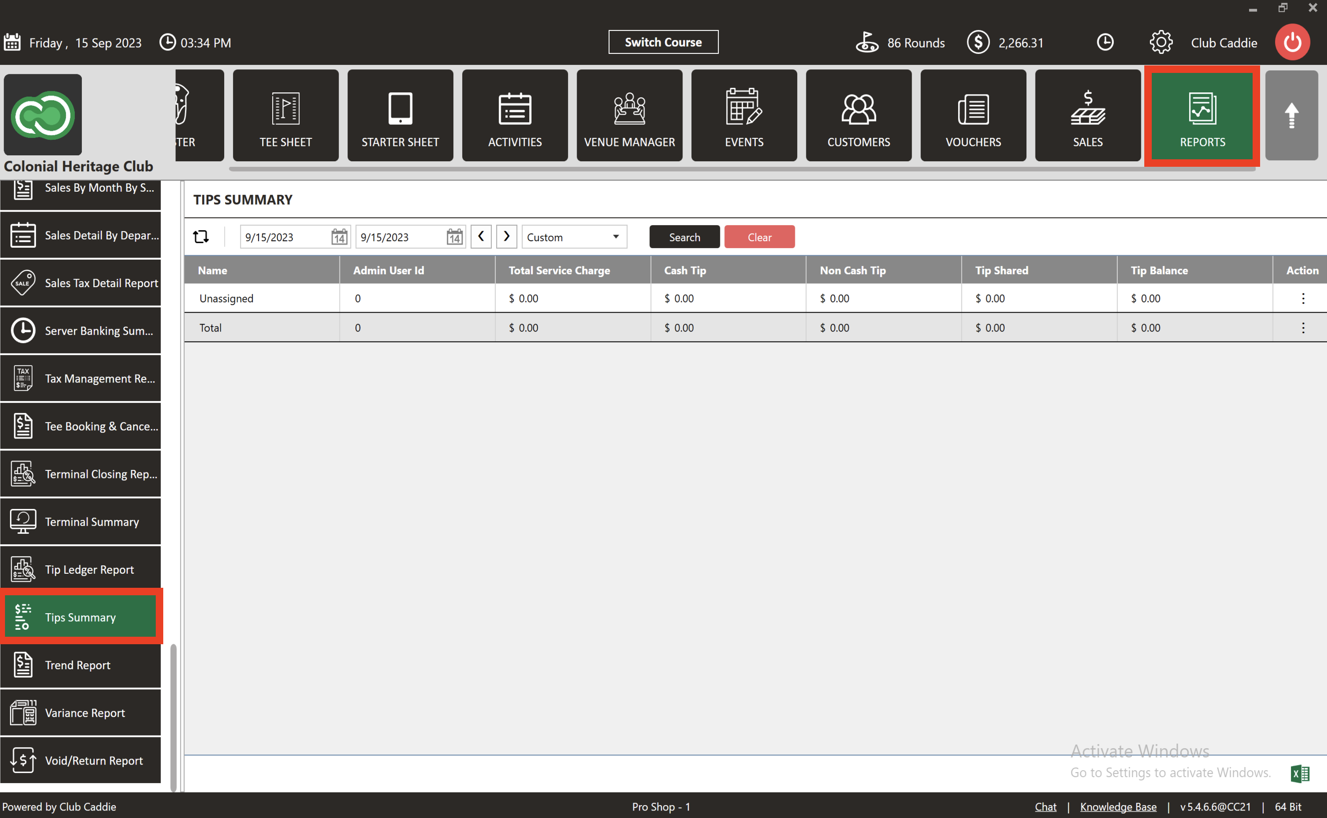 Step 2: On the right side of the screen, click on the “Tips Summary” button in the row on the left.