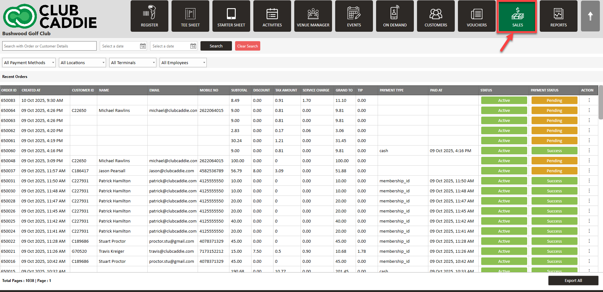 Step 1: Select the SALES module from the module navigation menu. This will open the Recent Orders window.