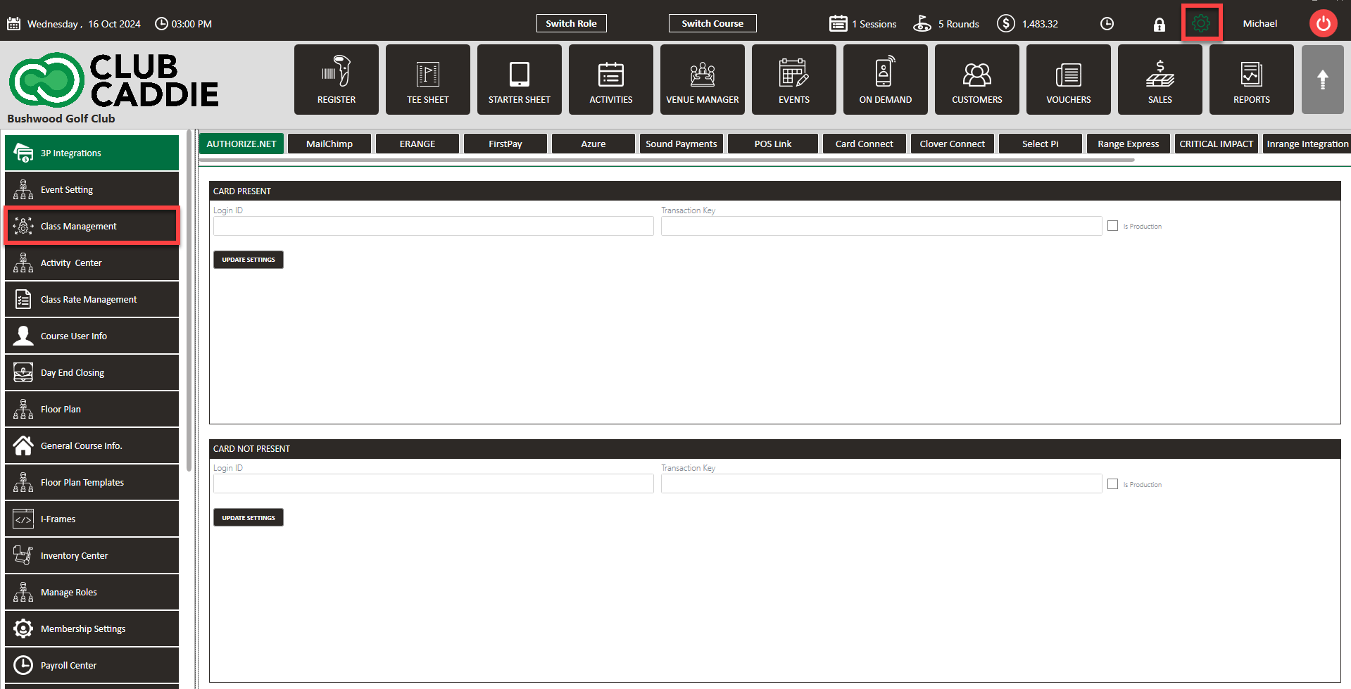 Step 1: Click on the Gear Wheel icon on the top-right corner of the screen. Then click on Class Management from the left-side menu.
