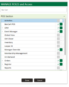 - Setting Up Manage Roles Specific to Beverage Cart. - Ensure that the correct roles have been created (IE, Beverage Cart, or Server Role).