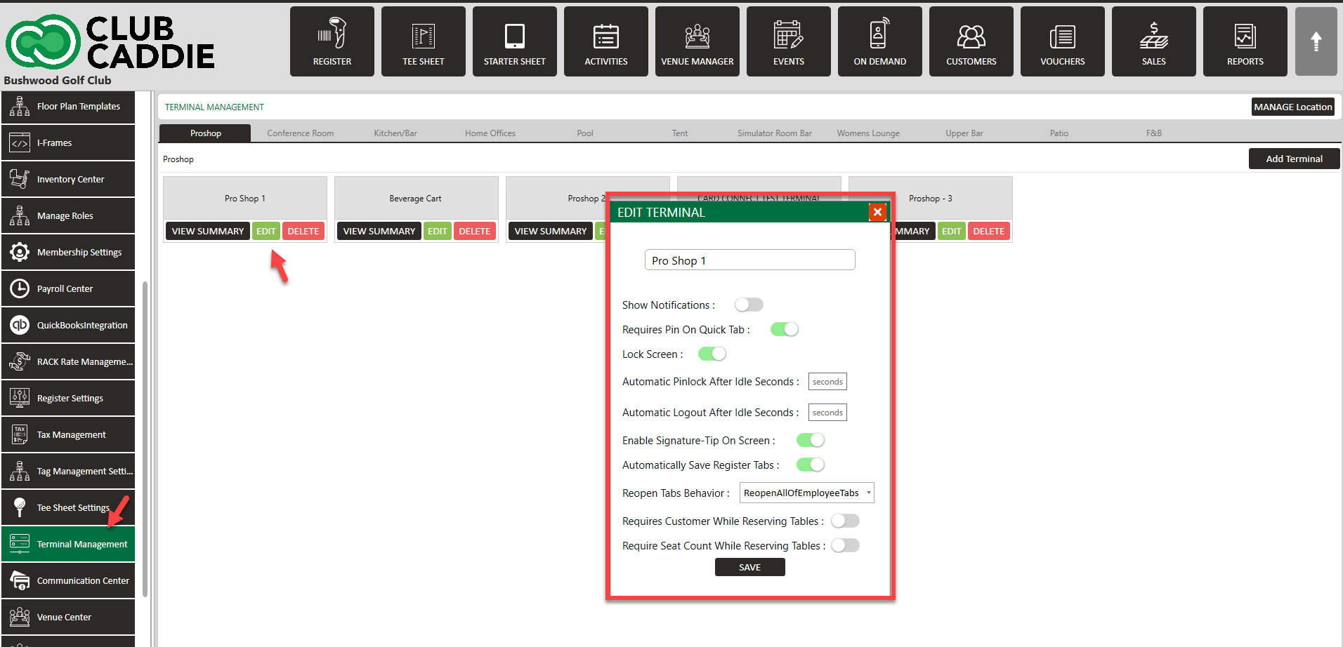 2: Terminal Management in Club Caddie: