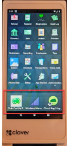 - Club Caddie App: Ensure the Club Caddie app is downloaded on your Clover device from the Clover App Market. If it is not, please contact Club Caddie.