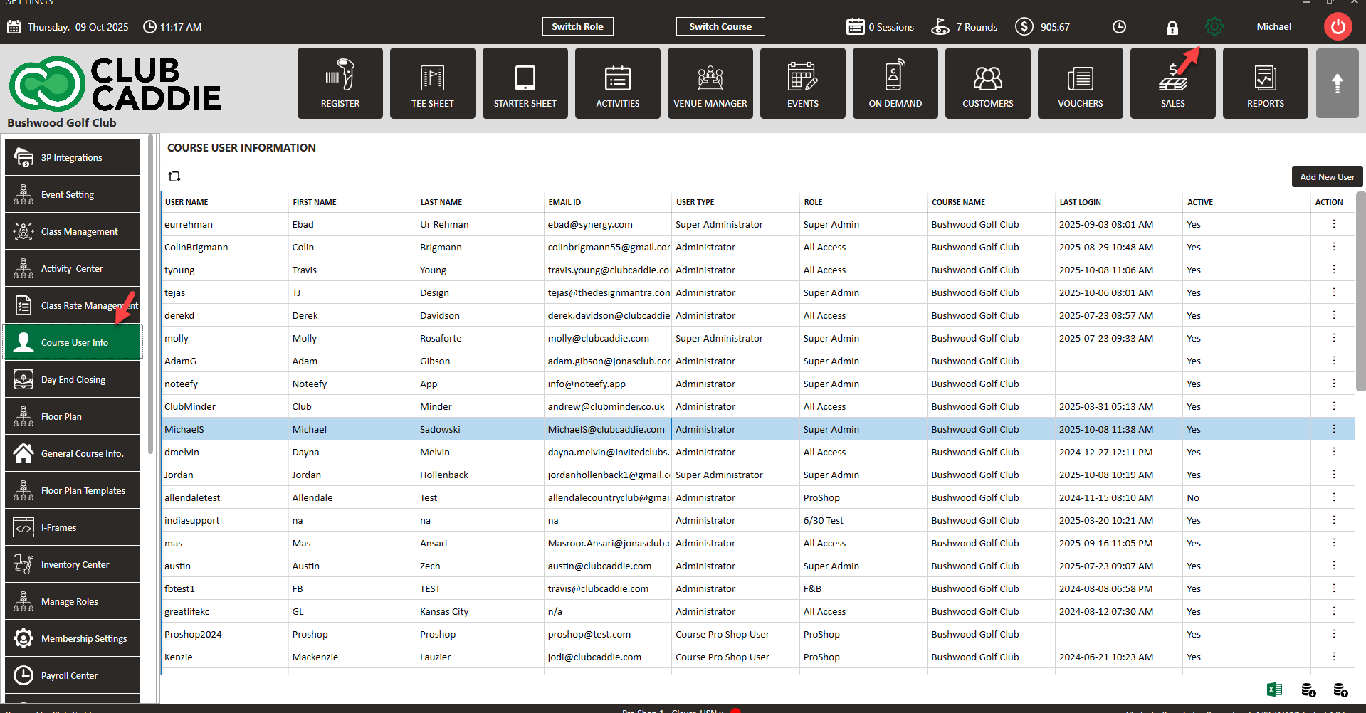 Step 1: Click on the Gear Wheel Icon on the top right corner of the screen. Then click on the Course User Info button from the left menu.