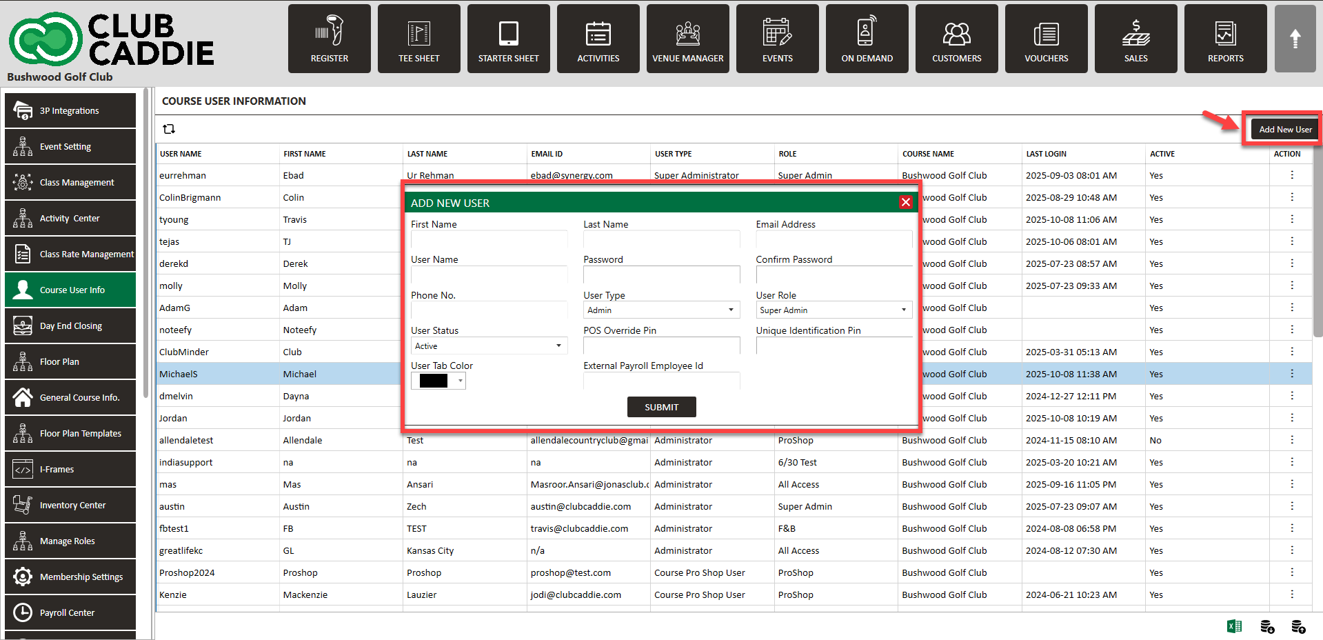 Step 2: Adding a New User – Click on the Add New User button on the right side of the screen. The system will open an ADD NEW USER window.