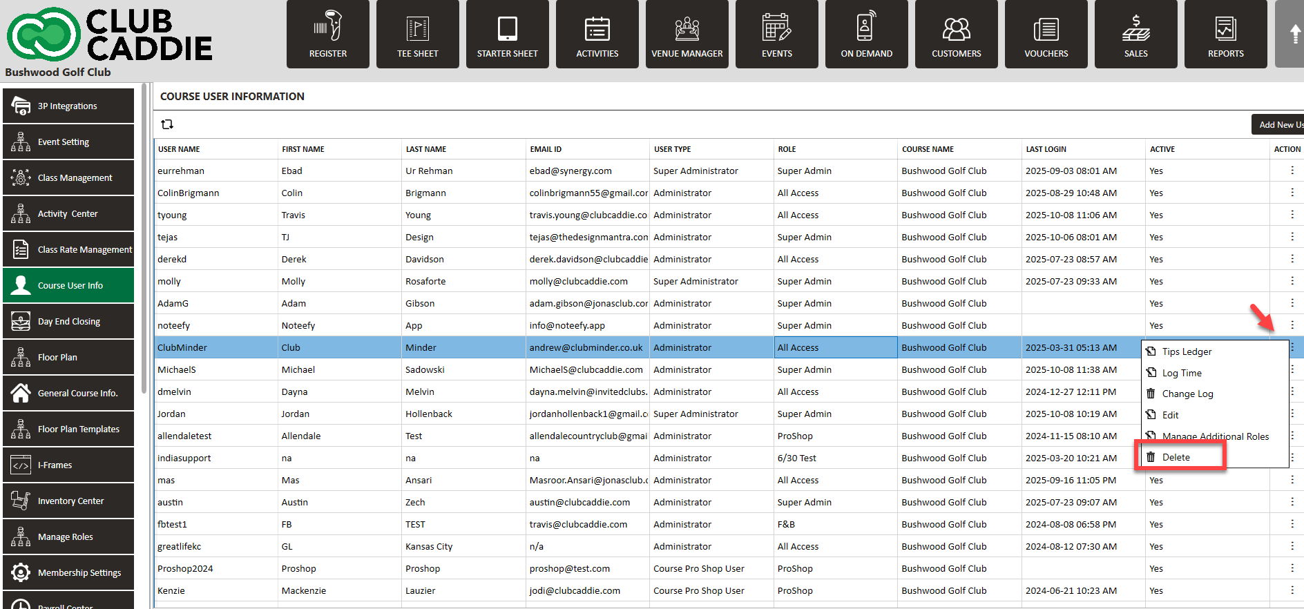 Step 6: Delete – To delete a user, select a user and click on the Delete button to remove the User from the COURSE USER INFORMATION. This function is typically used post termination of an employee.