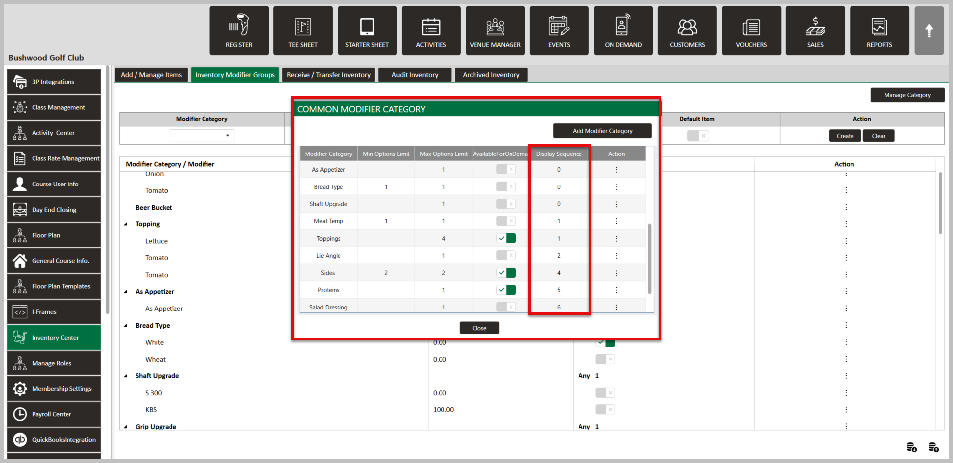 Step 4: You can also set the display sequence for each modifier. This prioritizes which category will display first, second, and so on when you are in the register.
