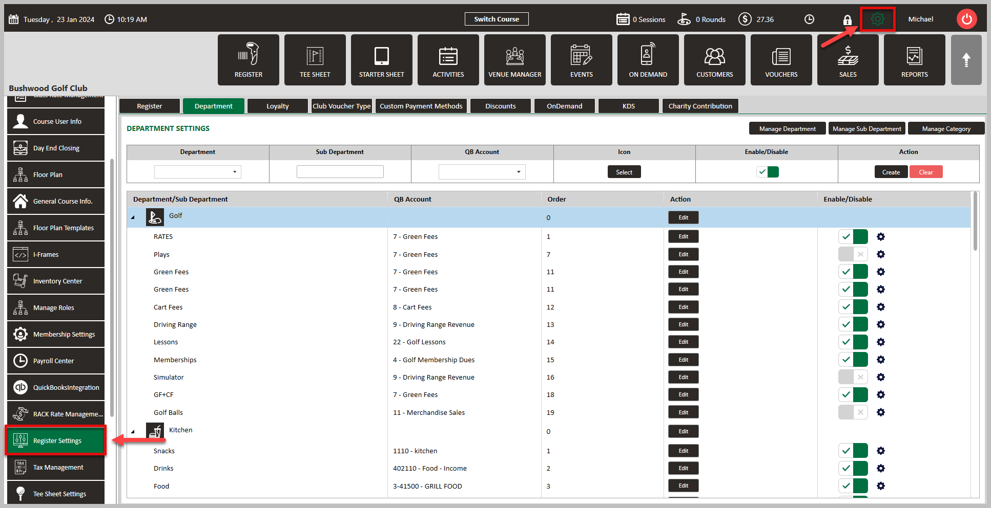 Step 1: Click on the Gear Wheel icon on the top right corner of the screen. Then, click on Register Settings from the left hand menu.